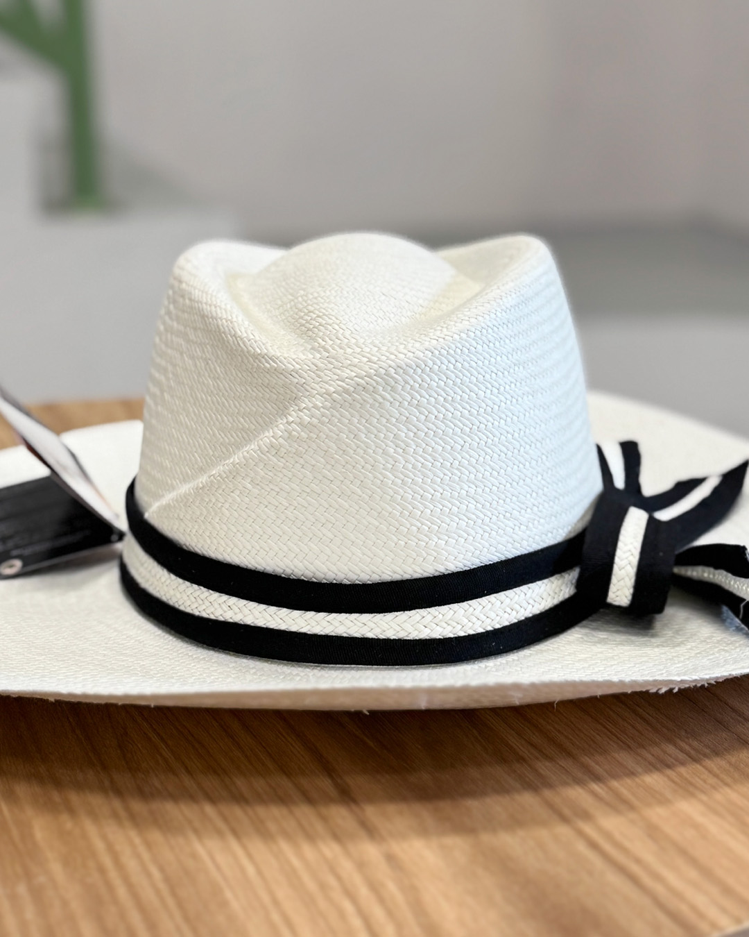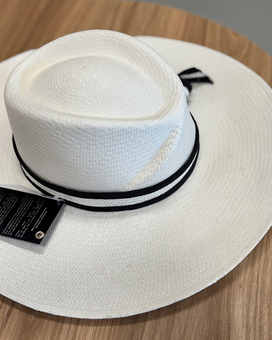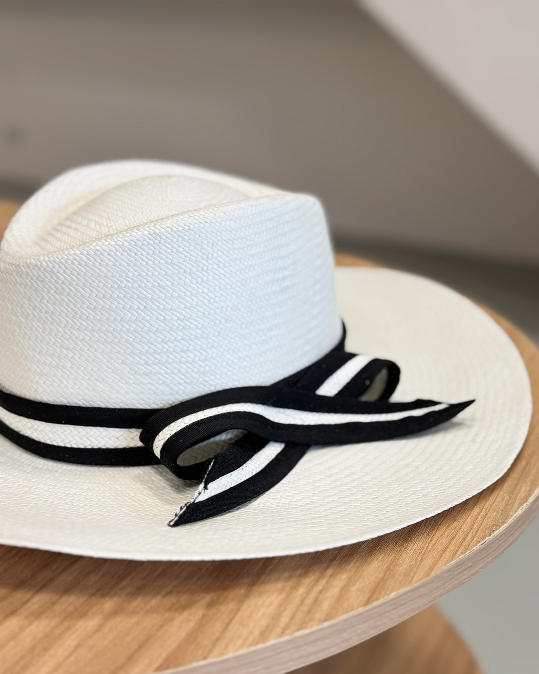 • Color blanco con cinta decorativa de tejido combinado con paja toquilla.