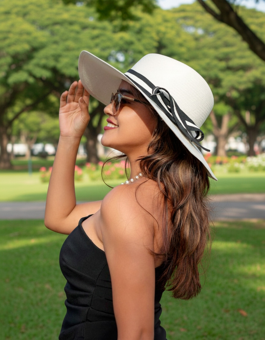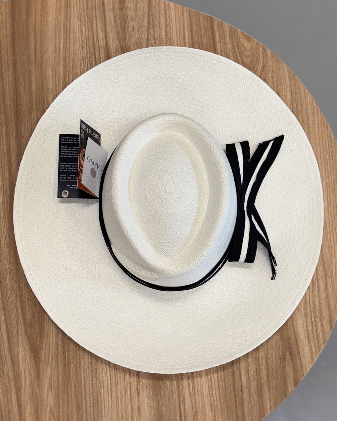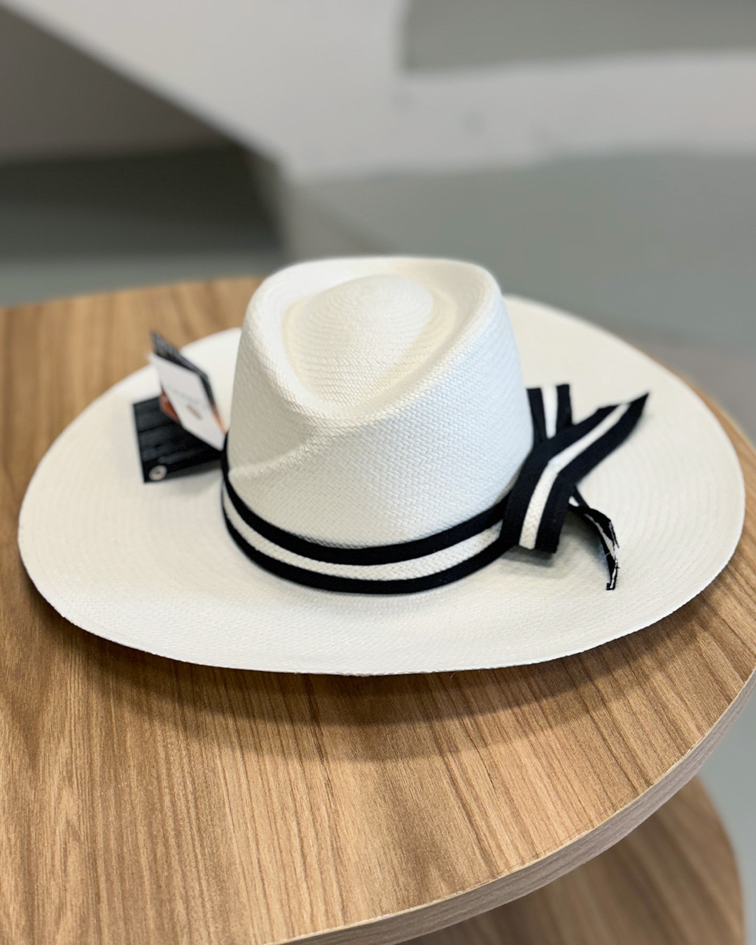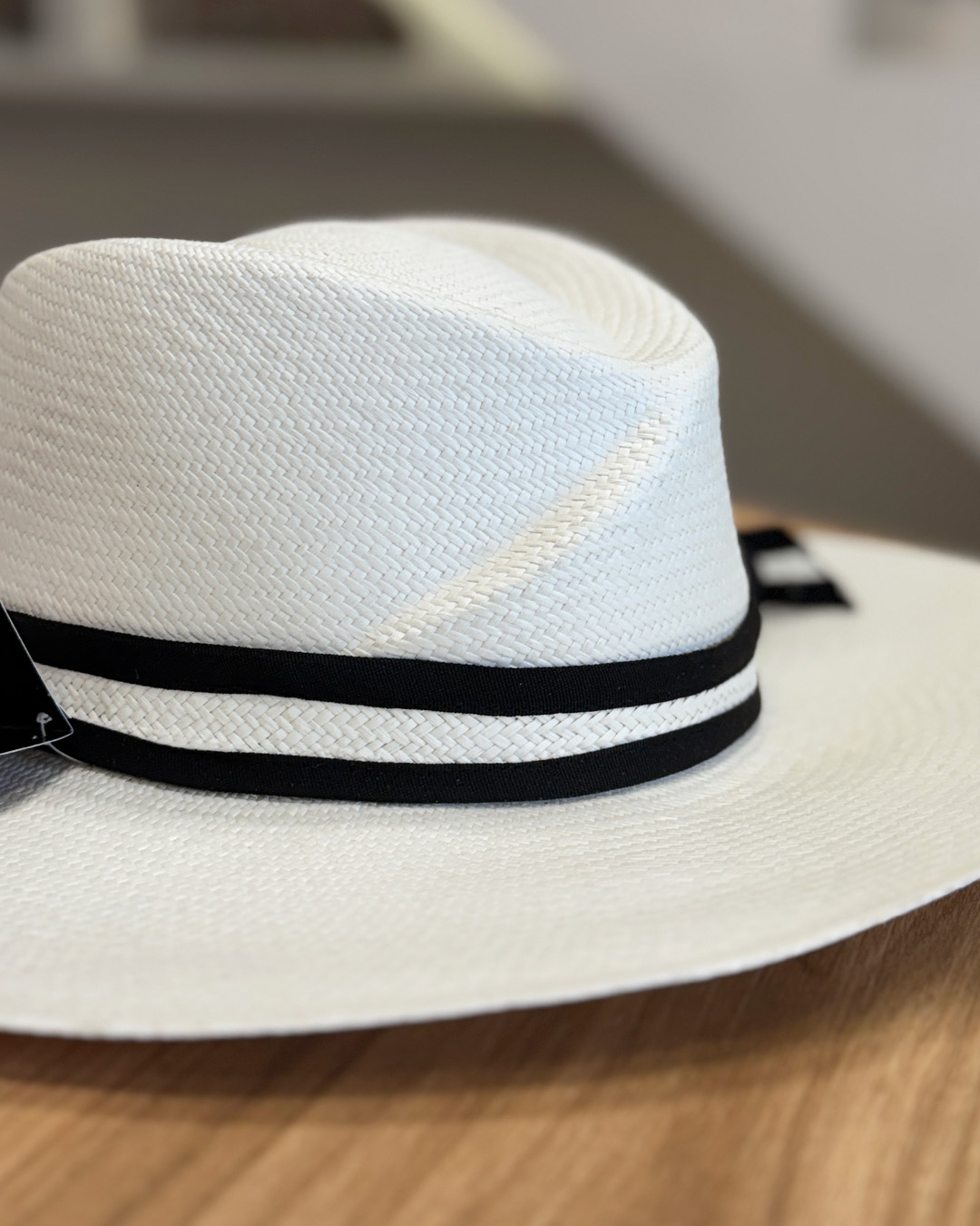 • Color blanco con cinta decorativa de tejido combinado con paja toquilla.